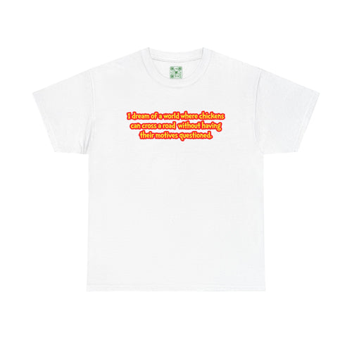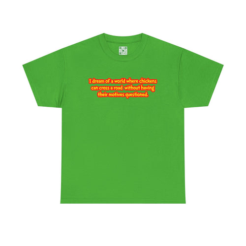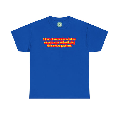 "I dream of a world where chickens can cross a road without having their motives questioned. " - Unisex Heavy Cotton Tee