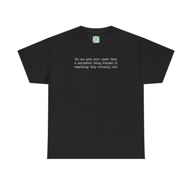 "No one gets more upset than a narcissist being accused of something they actually did." - Unisex Heavy Cotton Tee