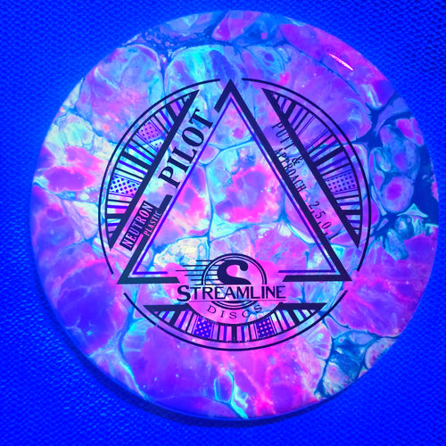 The Streamline Pilot is the first single-mold putter manufactured by MVP Disc Sports. It's a medium-depth, small-bead putt & approach disc with a comfortable, round nose. This putter is a slow flyer but flies very straight and glides well. The flight of the Pilot is described to be similar to that of a beat in MVP Anode.